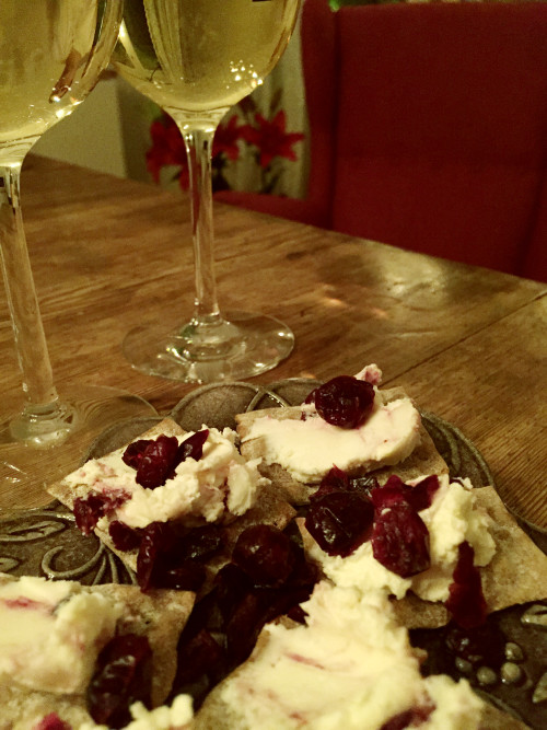 På en annan favorit, Utvaldas Fina Rågkex la jag en blandning på getost, tranbär och för att få den lite smidig blandade jag i lite crème fraiche.
